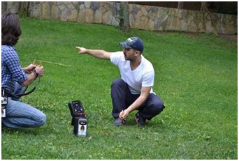 يتم يثبيت وحدة الارسال الرئيسية في الأرض بعد اختيار نوع الهدف المراد البحث عنه , وذلك من خلال غرز الاوتاد النحاسيه الخاصة بالجهاز وتوصيلها فيه